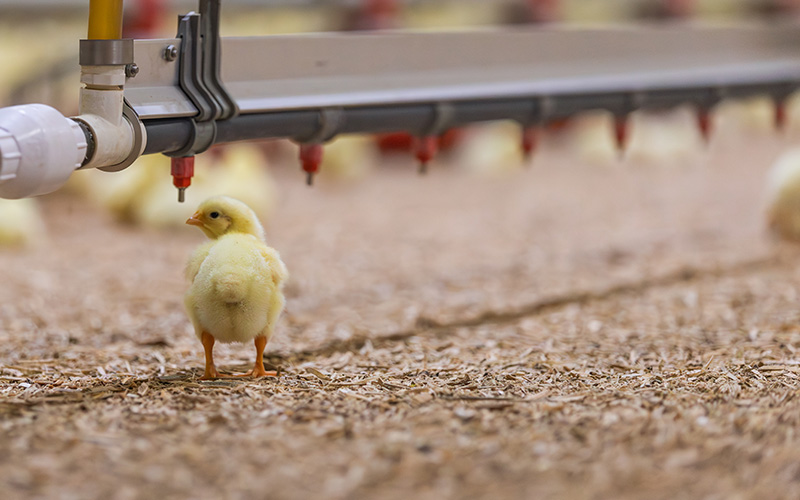Research from the CFC and Ontario Ministry of Agriculture, Food and Rural Affairs (OMAFRA) shows that keeping litter at 25–35% moisture and a pH of 7–8 reduces ammonia and footpad dermatitis. If possible, run a windrow compost cycle first. Add fresh litter to worn or wet spots. Manage your flock’s bed right.